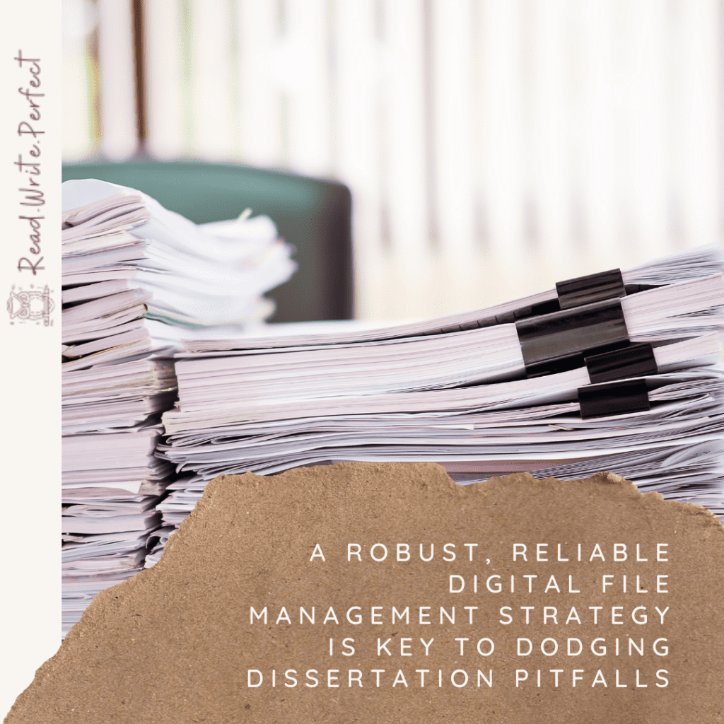 A robust, reliable digital file management strategy is the secret to dodging these dissertation pitfalls. While it may sound technical and complicated, it’s really about nothing more than being consistent, specific, and paranoid.