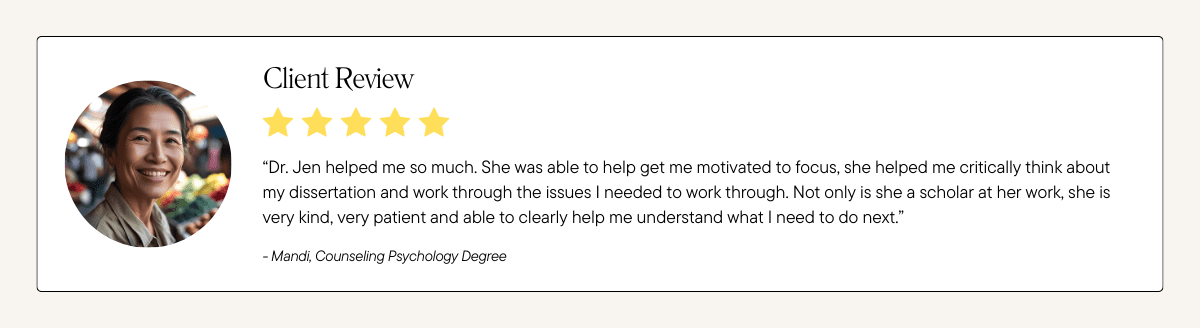 MY GUARANTEE TO YOU: If you don’t feel more confident about your study topic after the course, get a free 1:1 coaching session to work on this further.
